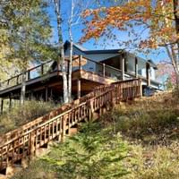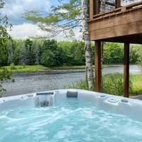 - Premium Amenities → A massive deck overlooking the river, 7-person hot tub, media room, shuffleboard, foosball, stocked bar, chef’s kitchen, and high-speed Wi-Fi.